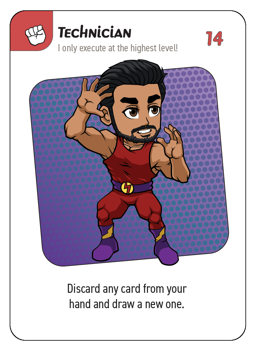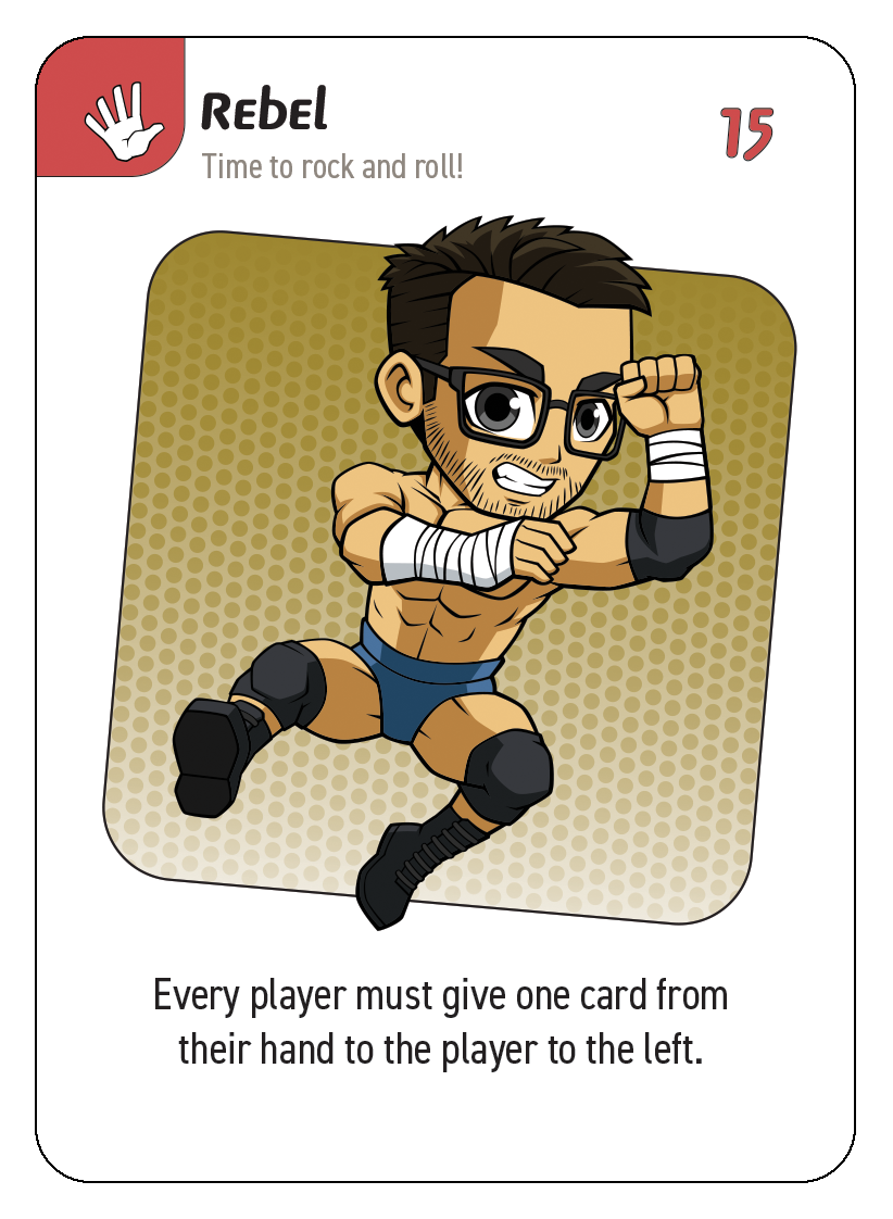 Hero Brawl is a wrestling-themed card game where you compete for the HERO BRAWL TITLE BELT while trying to knock out all the cards in your opponents' hands.