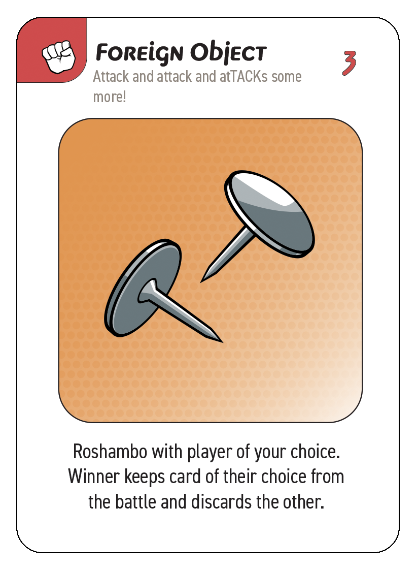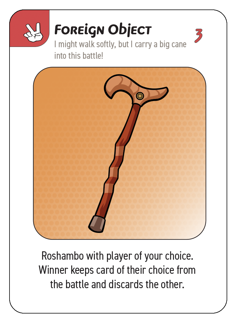 All Foreign Object cards, when played, result in a Roshambo battle.