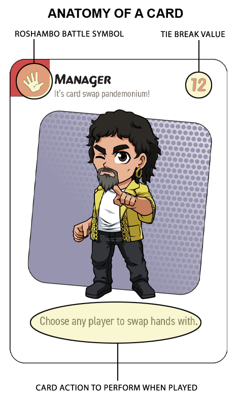 4. The play of a referee card immediately after a Roshambo battle is resolved will result in flipping the results of the battle (meaning the loser of the Roshambo battle gets to pick which card to keep!).