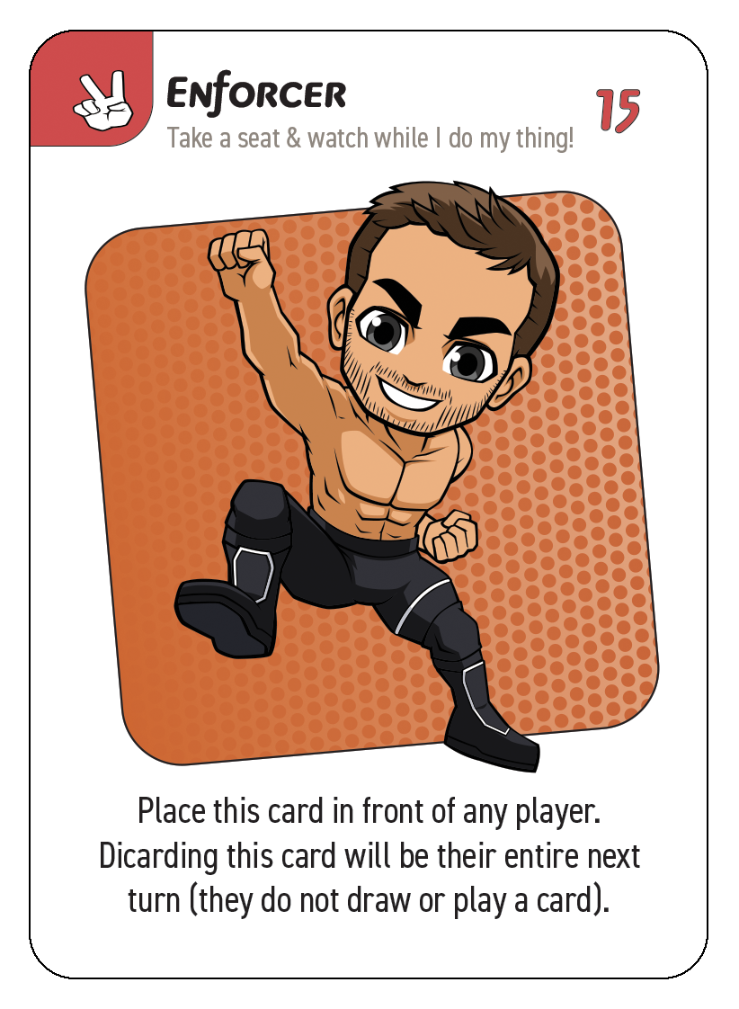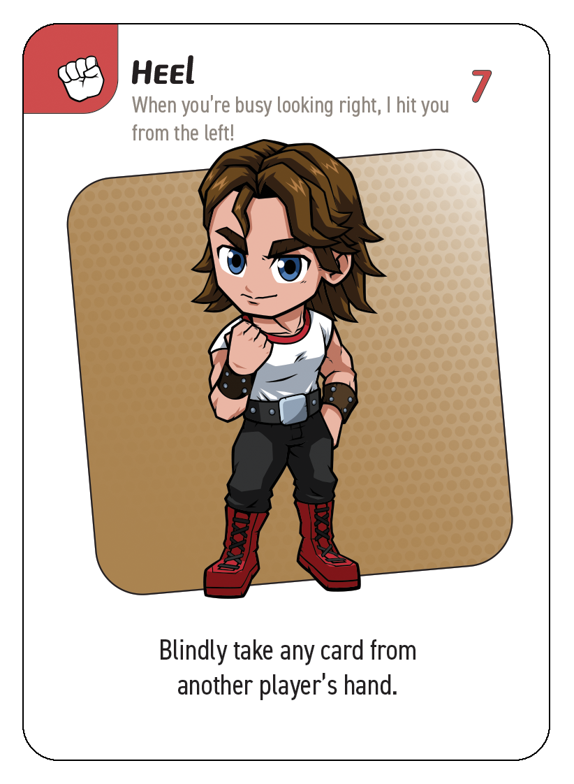 Hero Brawl is a wrestling-themed card game where you compete for the HERO BRAWL TITLE BELT while trying to knock out all the cards in your opponents' hands.