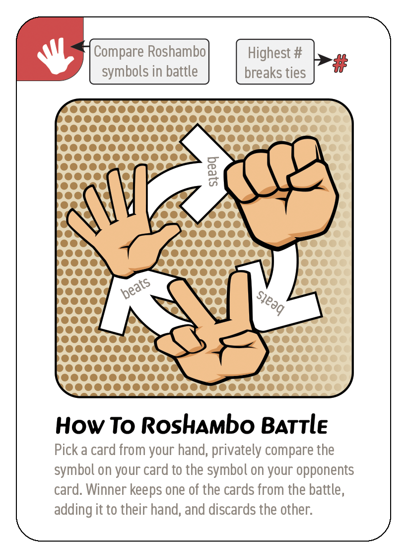 3. The Roshambo symbols on the two cards are compared in private between the two players to determine a winner (if they are the same symbol, the higher numbered card is the winner).